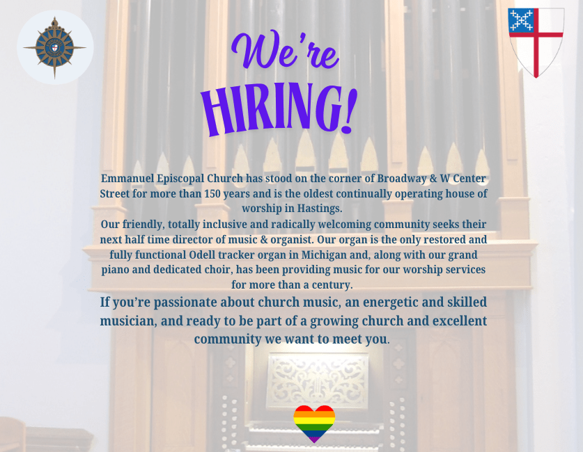 Our Parish Snow Policy: We will never cancel worship services if the Rector can get to church. If Hastings Public Schools calls a snow day our offices will also be closed.
